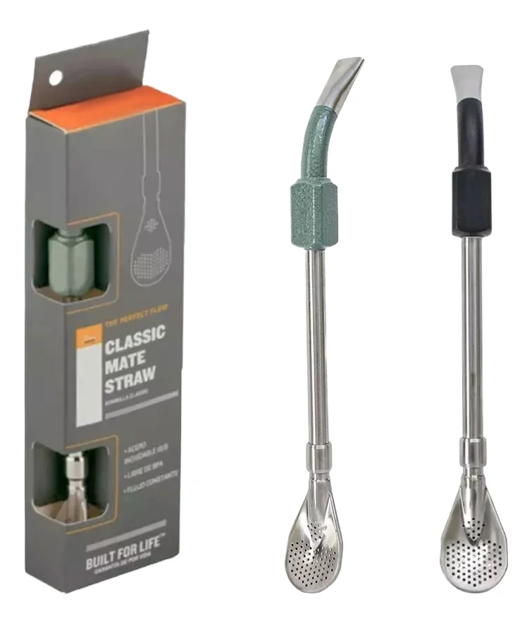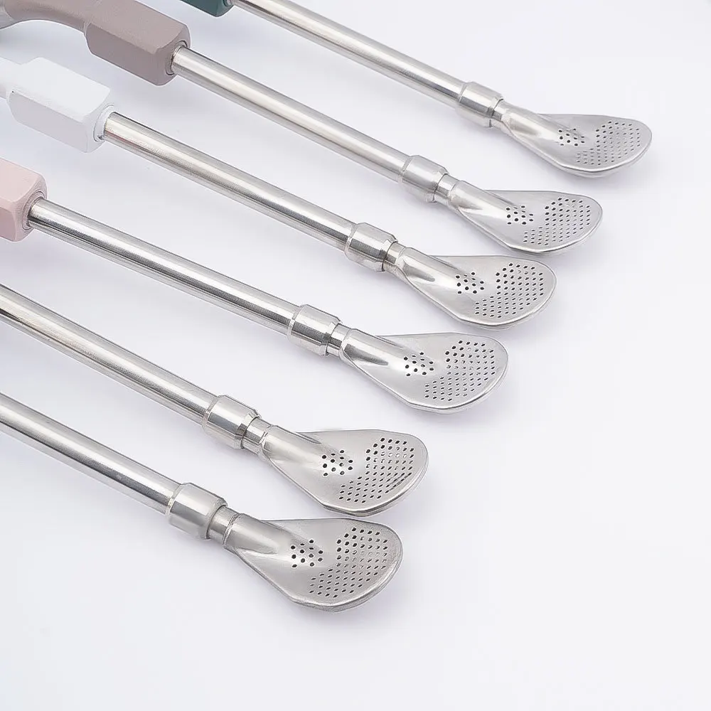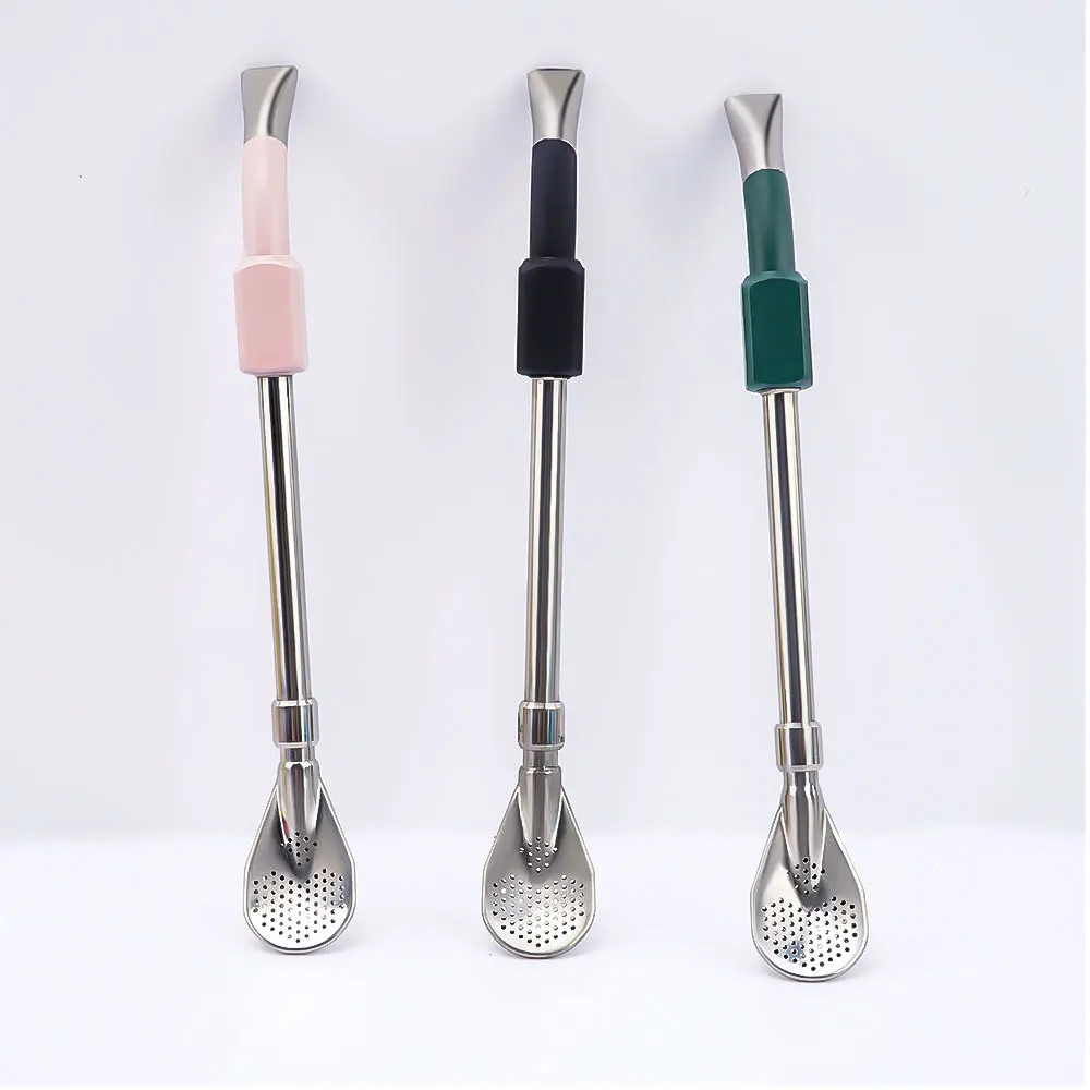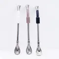 304 Stainless Steel Bamboo Straw Spoon in One Eco-Friendly Reusable Bar Accessories with Free Sample Brush Packaged in Bags