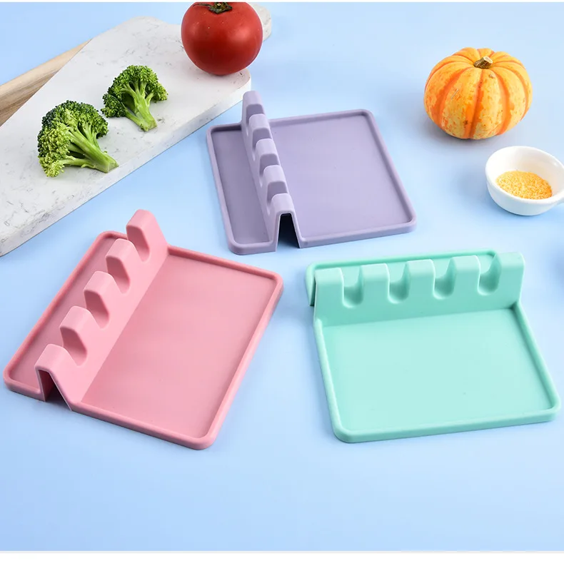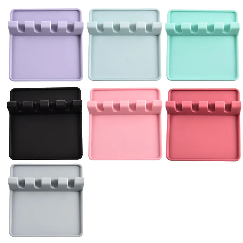 Food Grade 4-Grid Silicone Kitchen Utensil Holder with Heat-Resistant Feet Drip Pad Storage Rack for Tableware & Utensils