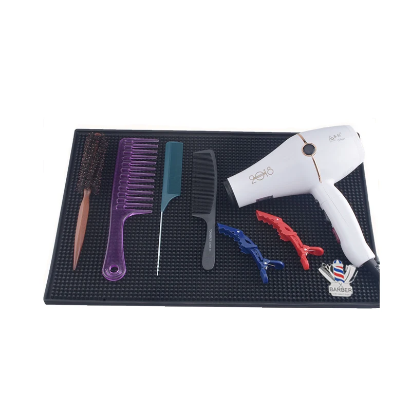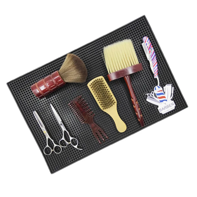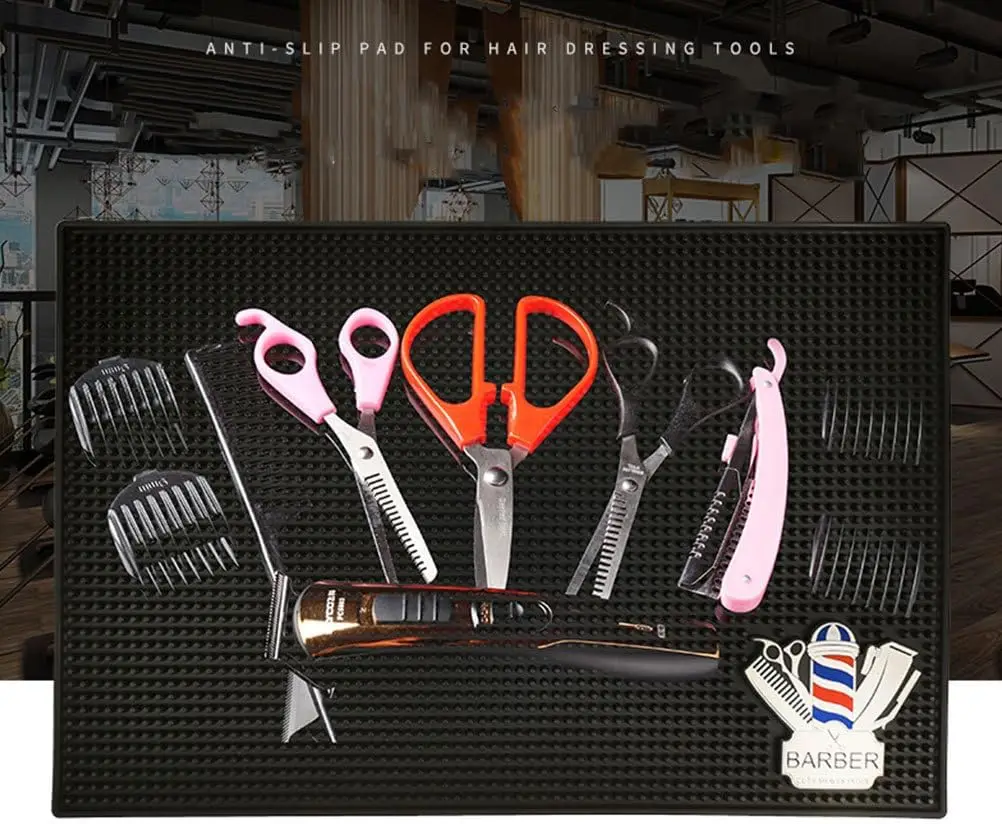 Non-Slip Black Rubber Hair Pads for Barber Shop Use Multi-Purpose Styling Tool with Scissors Comb Storage-Hair Clippers