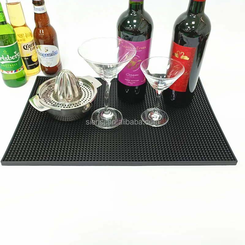 Thick coffee bar rubber spill mat is perfect for protecting bar pinnacle from mixing beverages or kitchen counter-tops from those