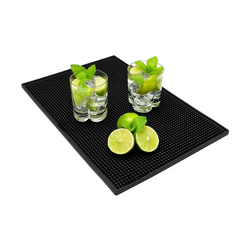 The bar spill mat is flexible, soft, non-slip and non-toxic, safe for use with food, durable Rubber with strong prongs to safely