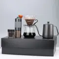 Portable Manual Coffee Grinder Set Wood and Metal Gift Color Box Includes Coated Kettle Portable Coffee Tool Kit